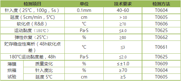 環保穩定型橡膠改性瀝青技術指標